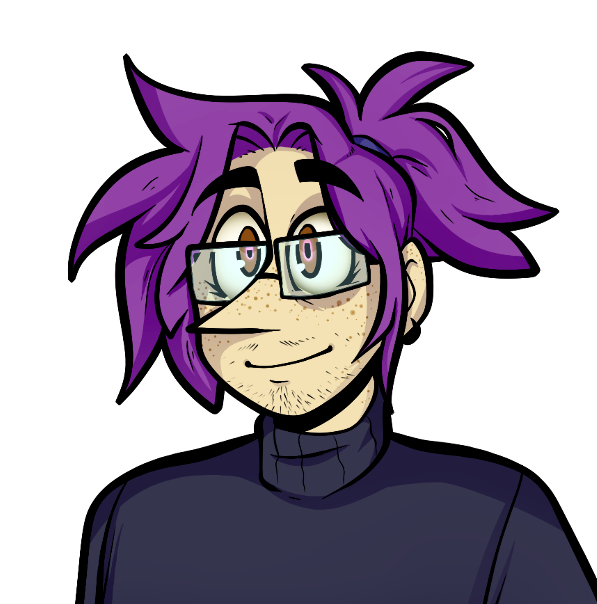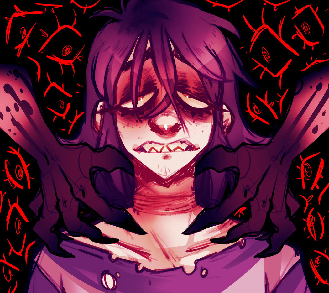 The story starts with the rpgmaker game "PURPLE" starring Randall Purpura and is the titular game that started it all. It was made solo by MASOCHISTFOX/MORTISFOX in 2018 (but was in development since 2015). Since then he's combined forces with BILESHROOM and together they've been creating a large and intricate universe.