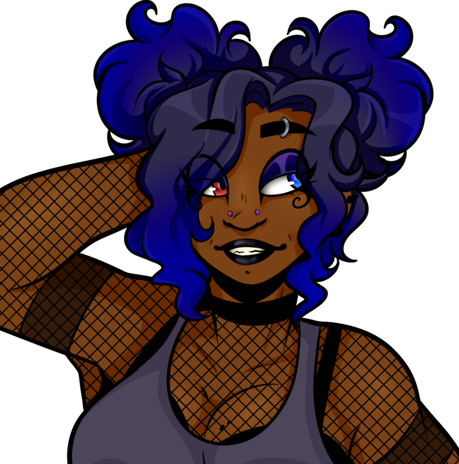 Winter EzeAge: 28 (in 1996)Birthday: 12/20/1968Ethnicity: Kenyan/NigerianHeight: 5′8″ (a bit taller since she wears goth boots)Weight: 165 poundsEyes: heterochromia (left eye blue, right eye reddish brown)Sexuality: Bisexual (in a poly relationship with Mya and Tai)Gender: Cis WomanHair: Black (Dyes the ends blue)Mental/physical ailments: migrainesAbout: Works as a bartender, drives a motorcycle, loves women. Tough but very sweet, tends to be a bit flirty, but acts as the responsible one usually. Loves bad romcoms and dogs, but also has a soft spot for cats.