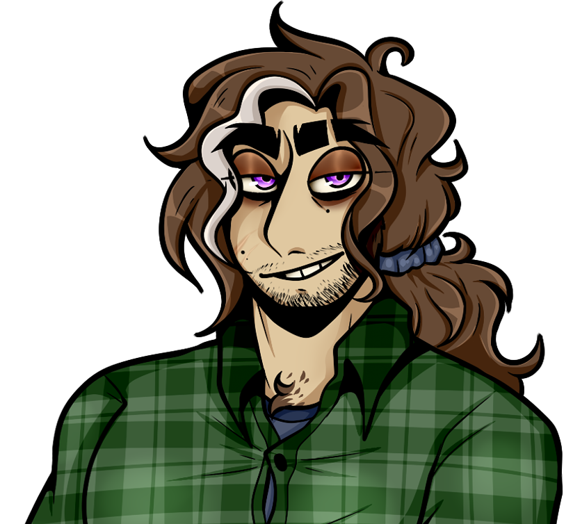 Tate FrostAge: 33Birthday: 4/28/1962Ethnicity: Creole Cajun/GermanHeight: 6'1"Weight: 315 poundsEyes: PurpleSexuality: BisexualGender: Cis manHair: Brown with white streaksMental/physical ailments: ASPD, NPDAbout: Calm and charming, but a little surly. Chops wood, throws axes and works as a butcher in a grocery store. Has a bit of a drinking problem, but holds his alcohol so well you wouldnt notice. Likes dogs, but hates cats. Moves around a lot and never stays in the same place for longer than a year.