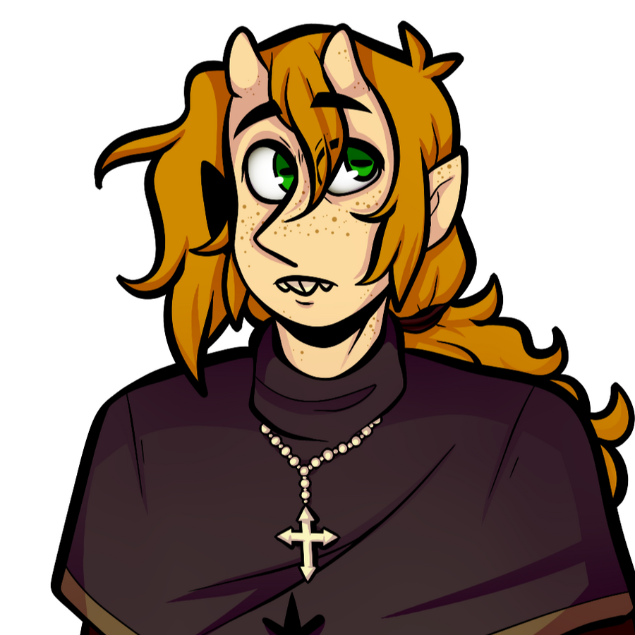 CrowAge: 19Ethnicity: Earth DemonHeight: 5'6"Weight: 130 poundsEyes: GreenSexuality: GayGender: Cis manHair: OrangeAbout: An earth born demon born from two angels. An apprentice plague doctor who cares about his master Mortis and wants to be the best doctor he can be. Isn't aware that demons aren't accepted in society, but knows he has to hide his appearance with his mask.