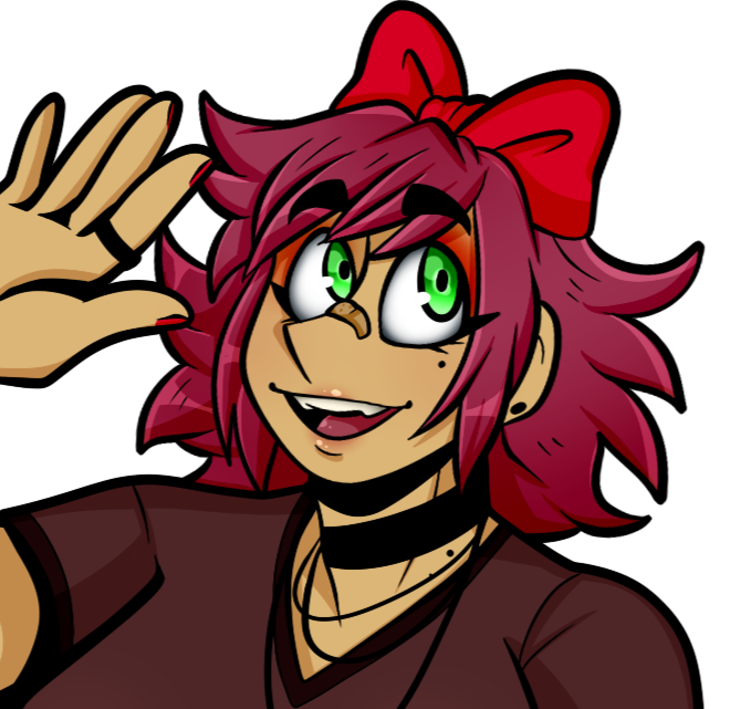 Mya GrahamAge: 26 (in 1996)Birthday: 06/06/1970Ethnicity: White/MongolianHeight: 5'6"Weight: 230 poundsEyes: GreenSexuality: Lesbian (in a poly relationship with Tai and Winter after the events of PURPLE)Gender: Trans WomanHair: BurgundyMental/physical ailments: Back pain, PTSD, ADHDAbout: Friendly but tough, Loves bandaids and medical supplies and cats. Extrovert and WILL be your friend, but wont take your shit and will shut you down and put you right. She has a dry sense of humor and makes jokes when she’s nervous, but sometimes misses social cues and might hurt your feelings without meaning to. Works at a cafe and a bookstore.