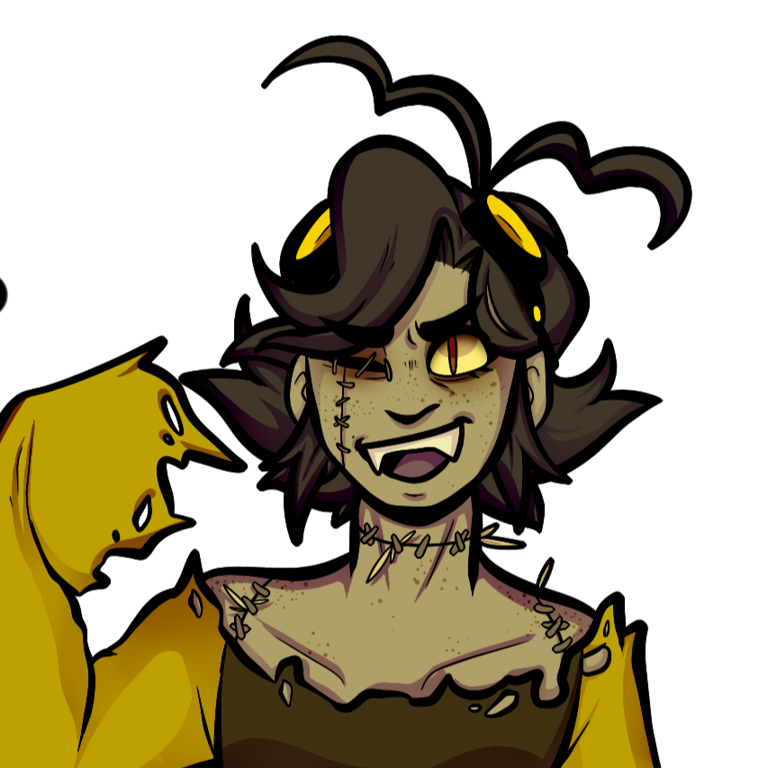 RoachAge: 25 (in 1997) (died at 23)Birthday: 12/16/1972Ethnicity: Romani/Portuguese/whiteHeight: 5'2"Weight: 75 pounds (body is filled with hay)Eyes: Brown iris, yellow scleraSexuality: GayGender: GNC Cis manHair: Greenish brownMental/physical ailments: ASD, PTSD, Bipolar, GAD, NPD, being dead, jaundice, scoliosisAbout: Remembers nothing of his life before dying, only knows hes a doctor and hes dedicated and loyal to walbert, but fears him intensely. Talks very bluntly and rude, a fan of giving silly nicknames and swears a lot. He’s named all of his roaches and the worm that lives in his ear. Secretly wants help.
