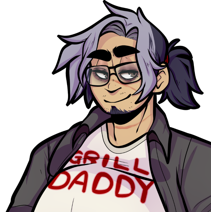 Quin BoudreauxAge: 41Ethnicity: CajunHeight: 5'9"Weight: 291 poundsEyes: BrownSexuality: BiGender: Cis manHair: Blue black with silver bangsMental/physical ailments: vegan cannibal (doesnt eat animals, only eats people), Only feels empathy for animalsAbout: A nice Cajun man, runs a local butcher shop and holds neighborhood barbeques and other social events. Super nice and fatherly, but don't go into his basement.